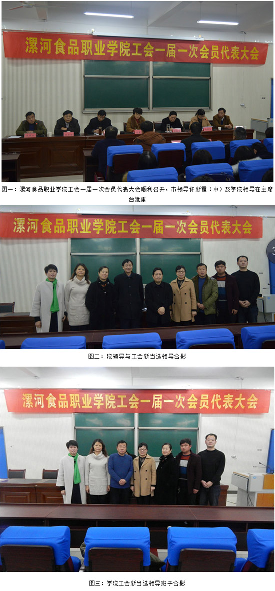 12月28日下午,我院在北校区学术报告厅隆重召开“漯河食品职业学院工会一届一次会员代表大会”。市总工会副主席许新霞出席会议并讲话,院领导詹跃勇、李五聚、张爱琴、程晋国、张学全、张建山等领导及73名会员代表出席会议。大会由院长助理张建山主持。