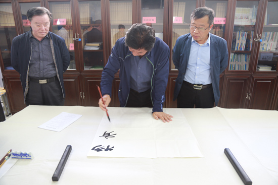 10月26日,应漯河食品职业学院工会的邀请,“国展”获奖书法家孙战生先生一行到学院进行了参观交流,院工会副主席、院长助理张建山,党办主任杨成海、院办副主任李元中等陪同参观校园、交流心得及现场书写。