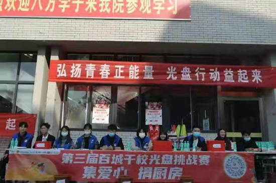 为深入贯彻落实习近平总书记重要指示精神,倡导文明用餐,制止餐饮浪费行为,培养节约习惯,在全校营造浪费可耻、节约为荣的氛围,我院学生会于2020年11月10日在北校区贾湖餐厅南门成功举办了首届以“拒绝舌尖上的浪费”为主题的光盘行动线下活动。