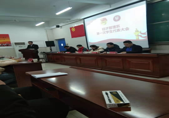 经济管理系党支部书记丁超军在讲话中指出:学生代表大会是系部学生参与系部管理、系部决策制定的重要途径,希望各位代表要不负全系学生的期望,为系部建设和发展积极献言献策。