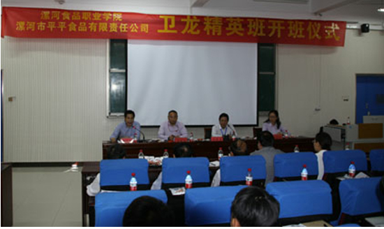 下午4时,“卫龙精英班”在漯河食品学院北校区六号楼二楼学术报告厅举行了开班典礼。漯河市平平食品有限责任公司人事主任潘丹丹介绍了公司发展前景,要求同学们好好学习知识,以后能够更好的为企业、为社会做贡献。“卫龙精英班”是通过企业安排专业人员来校给学生集中上课,将企业岗前培训与学校专业学习相结合的方式,真正践行“五共”(专业共建、课程共担、教材共编、师资共训、基地共建)人才培养模式。实现学校、学生、企业多赢的合作模式,不仅为企业输送更加专业的人才,也充分保障了学生的高端就业。