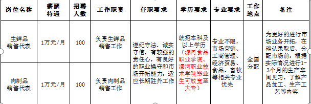 双汇销售代表招聘简章