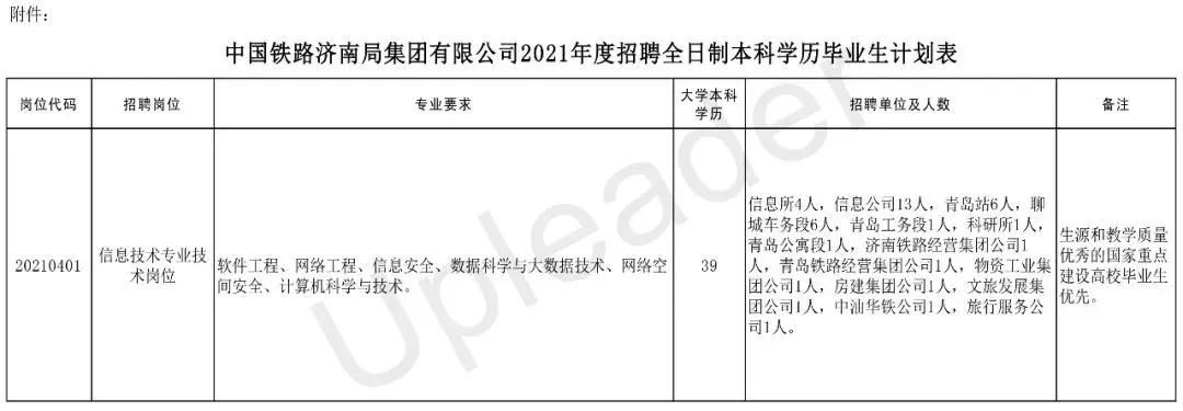 中国铁路济南局集团有限公司2021年度招聘全日制普通高校本科学历毕业生公告(四)