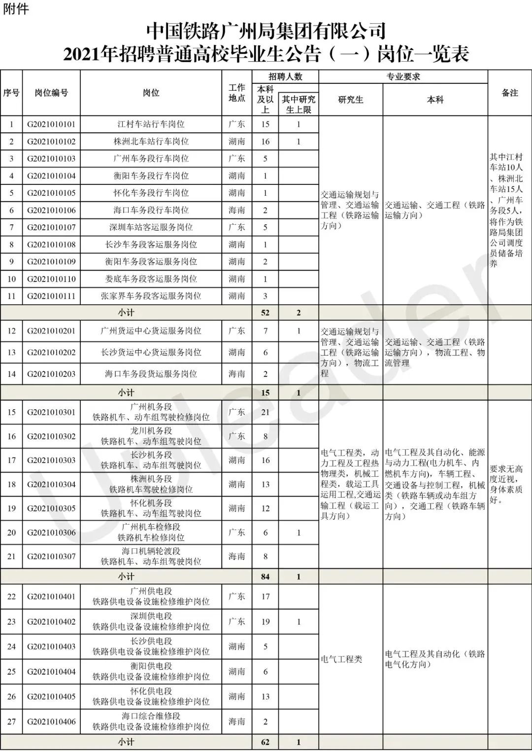 中国铁路广州局集团有限公司2021年招聘普通高校毕业生公告(二)