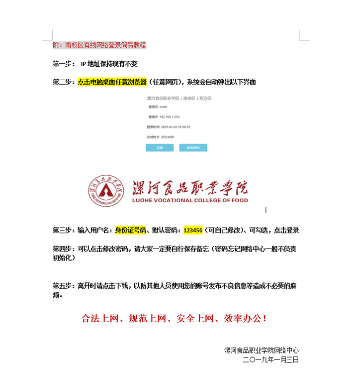 漯河食品职业学院(南校区)有线办公上网帐号申请表