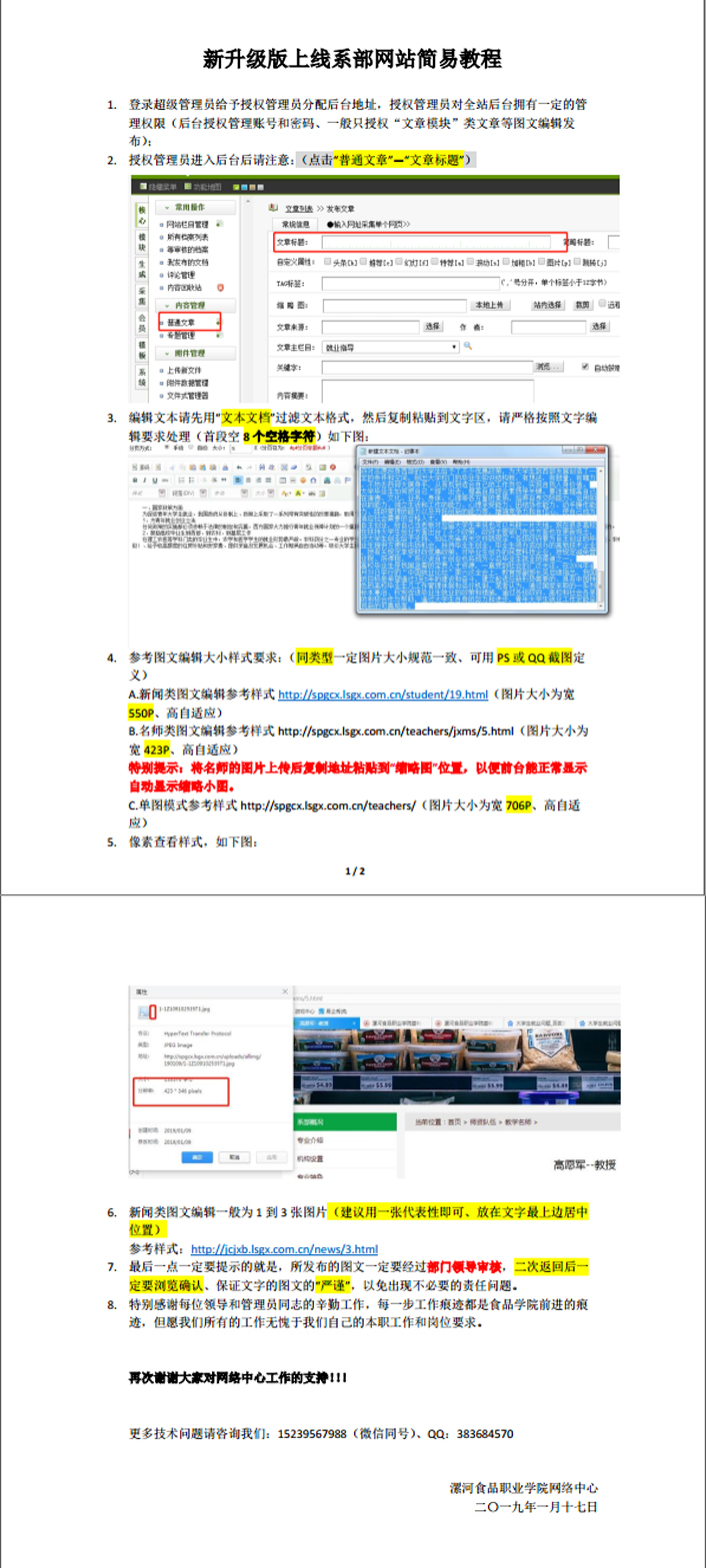 漯河食品职业学院网站栏目修改(含子网页)办事流程