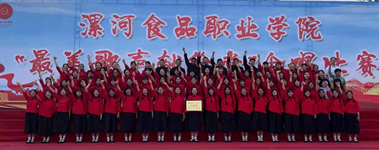2021年6月22日漯河食品学院为庆祝建党100周年在食源广场举行师生合唱比赛,基础教学部的《四渡赤水出奇兵》荣获一等奖。