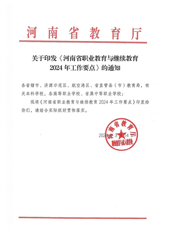 2024/03/15河南省职业教育与继续教育2024年工作要点