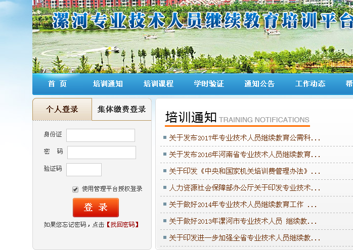 6、登录http://lhzj.ghlearning.com/ (漯河专业技术人员继续教育培训平台),勾选“使用管理平台授权登录”后,即可选年份在线学习。