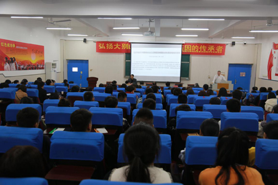 11月8日下午,学院在北校区D楼二楼党员活动中心举行“弘扬大别山精神、做红色基因的传承者”深入学习习近平总书记在河南考察调研重要讲话精神专家报告会。邀请省委主题教育活动宣讲团成员,信阳师范学院何晓坚博士为全院教职工上了一场别开生面的红色教育讲座。学院党组成员、领导班子、各党支部书记、系部主任、处室负责人、中层以上干部及教师代表、学生代表160余人参加报告会。