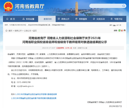 3月18日,河南省教育厅、省人力资源和社会保障厅组织专家评审出1063名省级骨干教师培育对象,思想政治理论课教研部陈广伟老师位列其中。... 阅读(1813)