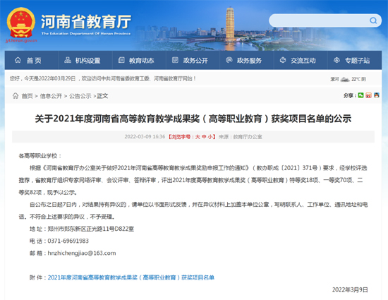 2022/03/10王含老师荣获2021年度河南省高等教育教学成果一等奖