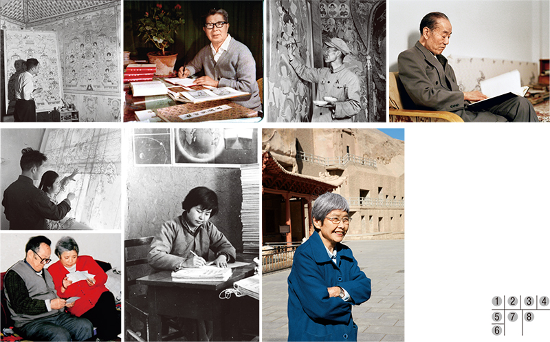 2020年1月17日,中宣部宣布授予敦煌研究院文物保护利用群体“时代楷模”称号。几代莫高窟守护人,辛勤耕耘敦煌文化沃土,把青春留在了大漠,献给了中华艺术瑰宝。常书鸿:图①拍摄于1955年,51岁的他正在临摹壁画;图②拍摄于上世纪70年代。段文杰:图③拍摄于1952年,35岁的他正在临摹壁画;图④拍摄于2003年(张伟文/摄)。史苇湘和欧阳琳夫妇:图⑤拍摄于1956年,32岁的他们正在研究壁画;图⑥拍摄于1998年,74岁的他们在看书稿(史敦宇/摄)。樊锦诗:图⑦拍摄于1965年,27岁的她在工作;图⑧拍摄于2014年,她在敦煌莫高窟前(中新社记者 韩海丹/摄)。除已标注的外,均为敦煌研究院供图。