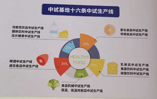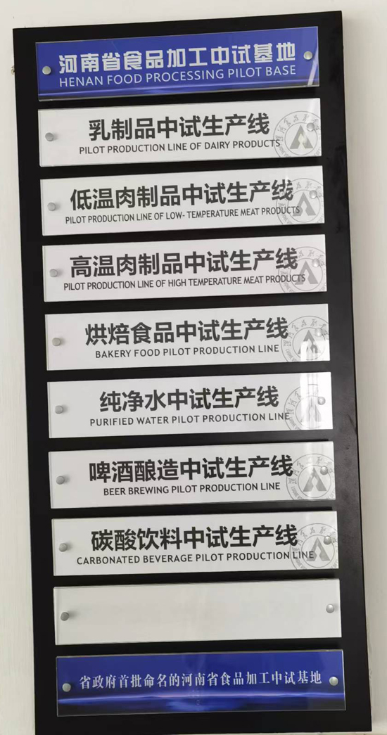 河南省食品加工中试基地为省政府首批命名的河南省8个中试基地之一,由漯河食品职业学院联合漯河经济技术开发区及其龙头企业共同建设,总投资2.1亿元,基础设施面积5万平方米,建设面积76700平方米,建有功能食品、新型食品、分析检测等6个研发中心及科研成果转化、孵化创业基地,目前拥有功能食品、肉制品、休闲食品等16条中试生产线,配置三重四级杆液质联用仪、气质联用仪、等离子体质谱仪ICPMS、高效液相色谱仪、气相色谱仪等大型检验检测仪器设备300余台(套)。