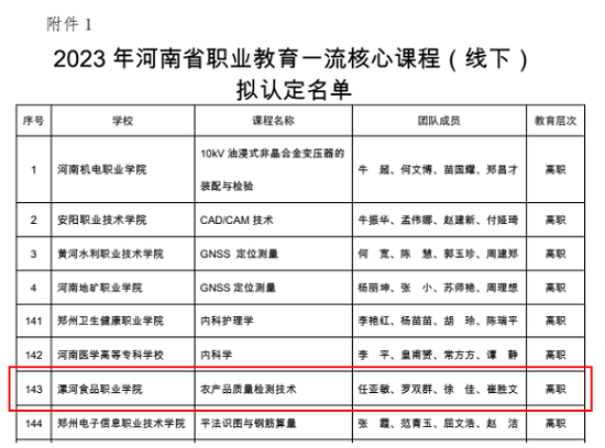 2023/10/30《农产品质量检测技术》拟认定为2023年河南省职业教育一流核心课程(线下)
