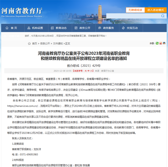 2023/11/09喜报!专业建设成效显著,我系再获1门河南省职业教育在线精品课程立项