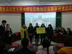我院第五届大学生宗教知识竞赛圆满落幕 2018年1月4日,我院第五届大学生宗教知识竞赛总决赛在北校区学术报告厅举行。学生处长助理邵换峥、学生处陈俊老师出席现场并进行了颁奖。...