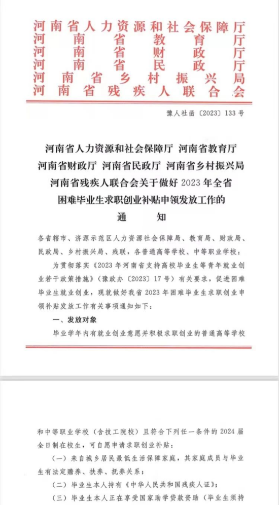 关于“转发”开展2023年困难毕业生求职创业补贴申领发放工作的通知