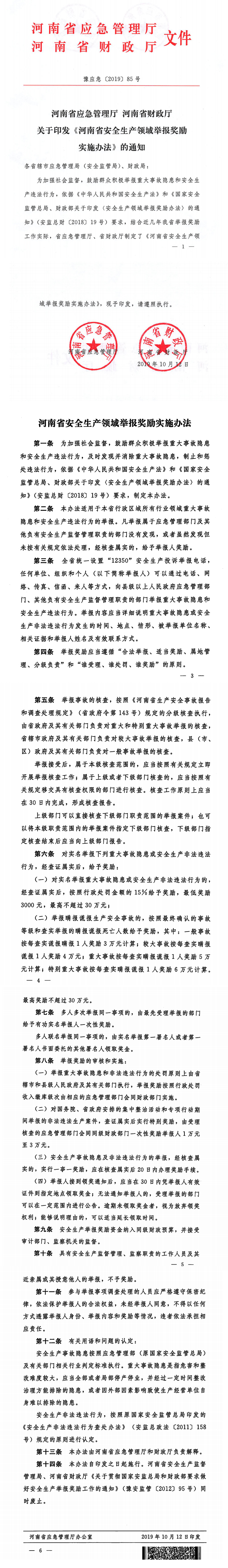 河南省应急管理厅 河南省财政厅关于印发《河南省安全生产领域举报奖励实施办法》的通知