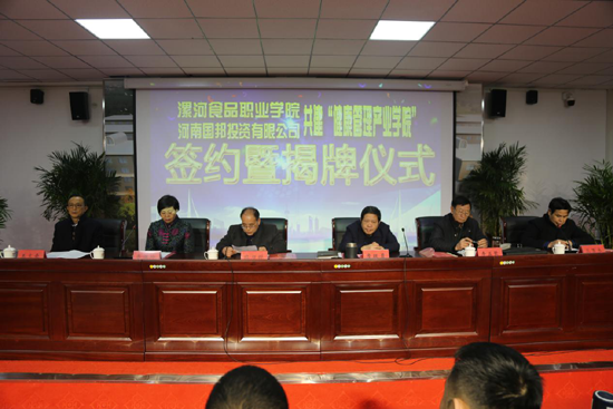 12月29日上午,我院与河南国邦投资有限公司合作共建“健康管理产业学院”签约暨揭牌仪式在新校区举行。河南国邦投资有限公司执行董事陈超然、河南国邦投资有限公司项目经理吕熠鹤、学院党委书记詹跃勇、院长李五聚等院领导、相关职能部门负责人及健康管理专业师生代表及省内多家企业的负责人或代表参加签约暨揭牌仪式。