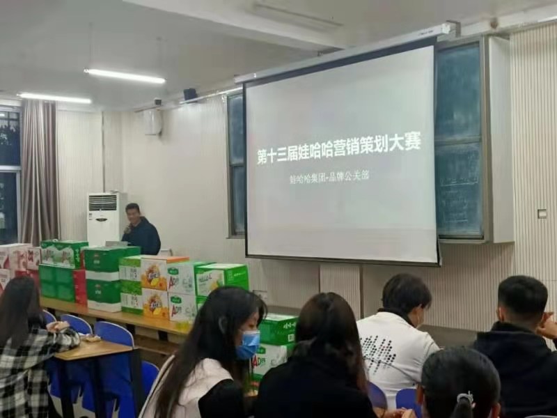 第十三届“娃哈哈营销策划大赛”颁奖仪式于 2020-12-22 在E楼501教室举行颁发典礼。