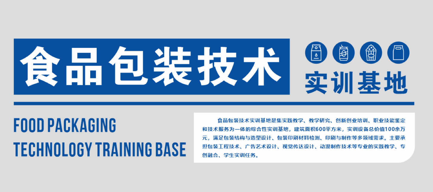 食品包装技术实训基地是集实践教学、教学研究、创新创业培训、职业技能鉴定和技术服务为一体的綜合性实训基地,建筑面积600平方米,实训设备总价值100余万元,满足包装结构与造型设计、包装印刷材料检测、印刷与制作等多领域需求。主要承担包装工程技术、广告艺术设计、视觉传达设计、动漫制作技术等专业的实践教学、专创融合...... 阅读(1000)