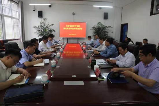 在听取栗社臣关于漯河市职业教育工作介绍和詹跃勇关于学院重点工作汇报后,陈垠亭指出:漯河市政府高度重视职业教育的发展,推进建设豫中南职业教育中心城市建设,职业教育步入了快速发展的轨道。漯河食品职业学院举办高职教育12年来,发展速度快,特别是学院的漯河市食品产业公共研发平台,汇聚了中国农科院农产品加工研究所、江南大学食品学院、西北农林科技大学食品学院等国内一流研发资源,按照“不求所有、但求所用、订单研发”的原则,支撑漯河中国食品名城2000亿级食品产业集群和河南万亿食品产业,为漯河市100多家规模以上食品企 业和几千家小微食品企业节约了技术研发成本,打通了产学研最后“一公里”,形成了“产、学、研、用、创”融合发展模式,破解了产教融合、校企合作的难题,为我省职业教育服务地方产业发展提供了借鉴。