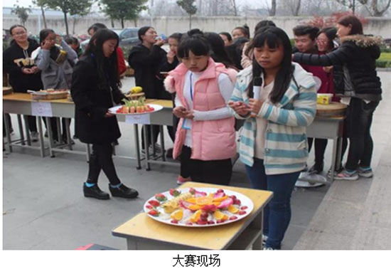 活动首先由参赛选手制作出水果拼盘,然后对自己的作品进行命名,写出小组口号、寓意,对作品进行详细讲解,最后由评委老师品尝并进行打分。