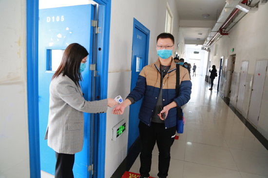 任课老师对上课学生进行逐个测温