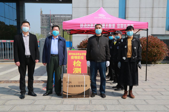 4月7日上午,我院2017级参军入伍(河北省承德市武警某队)学生韩鹏飞,委托其父母向学院捐赠3000个一次性医用口罩。我院学生处处长侯保清、保卫处处长郭新良代表学院接受了捐赠。