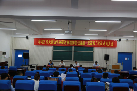 9月8日上午,学习贯彻大别山学院研讨班精神加快推进“双高校”建设动员大会在D楼二楼报告厅召开,院党委书记詹跃勇,院长李五聚,党委副书记、副院长张爱琴等院领导,全体中层干部及部分教师代表参加会议。