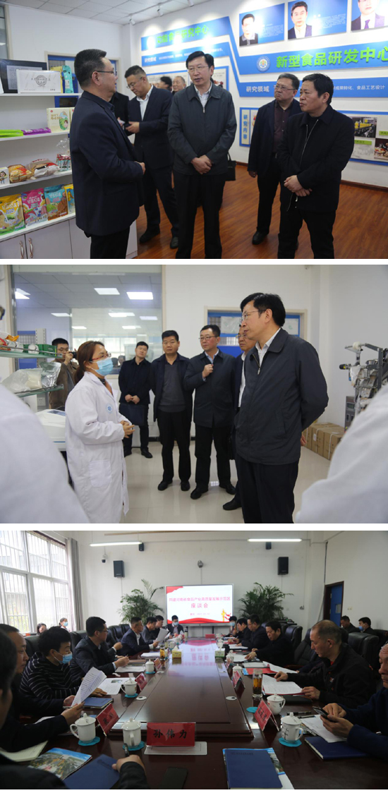座谈会前,王建防副局长一行先后到漯河市食品产业公共研发平台、中标检测进行调研,详细了解漯河市食品产业科技研发、科技服务、成果转化情况。