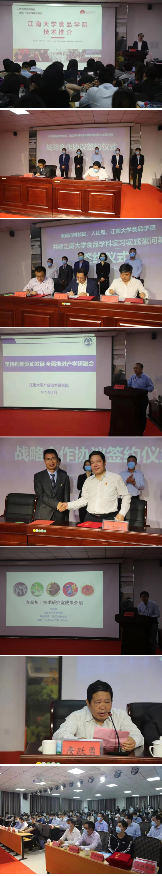 会议第二阶段,市科技局、市人社局先后与江南大学食品学院、西北农林科技大学食品科学与工程学院签订了共建食品学科实习实践漯河基地;漯河食品职业学院与西北农林科技大学食品科学与工程学院就产学研合作签订战略合作协议。