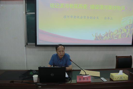 余丰立以“铭记漯河老区历史 建设漯河美好明天”为题,从“了解漯河革命历史、增强漯河自信”、“读懂红色记忆、领会老区精神”、“践行老区精神、助推老区发展”等3个方面,深刻阐述了漯河在土地革命战争、抗日战争、解放战争中,涌现的苏进、吉合、张万春、赵晓舟等开国将军以及谷迁乔、沈东平、赵伊坪等一批对中国革命有较大影响的革命烈士,为革命提供了大量的人力、物力支持,是名副其实的革命老区;充分揭示了老区精神就是一种爱党信党、坚定不移的理想信念,一种舍生忘死、无私奉献的博大胸怀,一种不屈不挠、敢于胜利的英雄气概,一种自强不息、艰苦奋斗的顽强斗志,一种求真务实、开拓创新的科学态度,一种鱼水情深、生死相依的光荣传统;全方位展现了漯河市老促会扎扎实实地为漯河老区干事出力,助推漯河老区发展的生动实践。