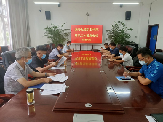 为做好8月22起河南新一轮强降雨的应对准备,确保我院师生生命及财产安全,8月21日,我院在新校区会议室召开防汛工作紧急会议。办公室、后勤处、保卫处、基建处、学生处、实训中心负责人,院防汛工作领导小组成员及部分暑期值班人员参加会议,会议由学院董事长詹耀轩主持。