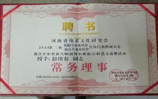 2024年9月3日,我院教师彭绪春受邀参加河南省豫菜文化研究会名厨专业委员会面点专业委员会举办的第二届会员代表换届大会及新豫菜新面点传统小吃餐饮企业名厨大师交流... 阅读(922)