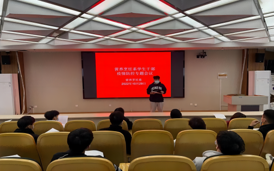 2022 年 10 月 29 日上午 11 时,营养烹饪系学生干部疫情防控专题会议召开。为进一步落实上级领导部门关于预防新型冠状病毒感染的肺炎防控工作,营养烹饪系洪院长组织学生会干部、各班班长代表采用集体方式在烹饪系实训室报告厅召开疫情防控专题会议。召开会议过程中,同学们认真听取洪院长和许连帅主席制定应对学院新型冠状病...... 阅读(1617)